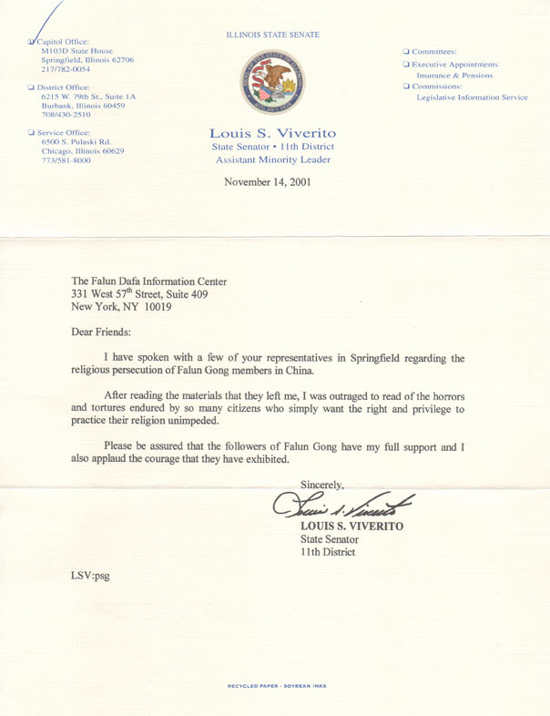 Illinois: Support Letter from State Senator Louis S. Viverito