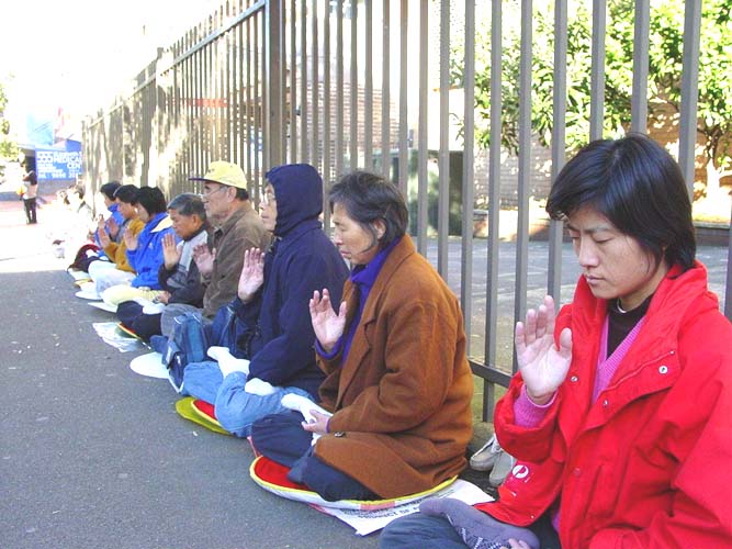 (Clearwisdom.net) In the past two days, Sydney practitioners gathered in front of the Chinese Consulate to send forth righteous thoughts to eliminate the evils together with practitioners all over the world. During the intervals between sending forth righteous thoughts, practitioners studied the Fa. All practitioners united into one body and sent forth righteous thoughts every half hour.
