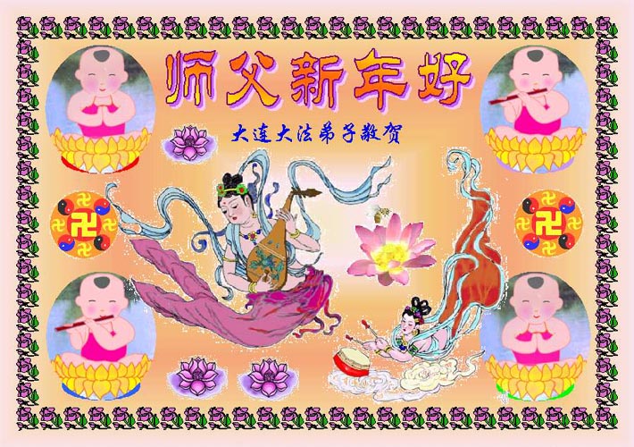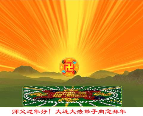 Words in image: Happy New Year, Master. Dafa practitioners in Dalian present New Year's greetings to you.