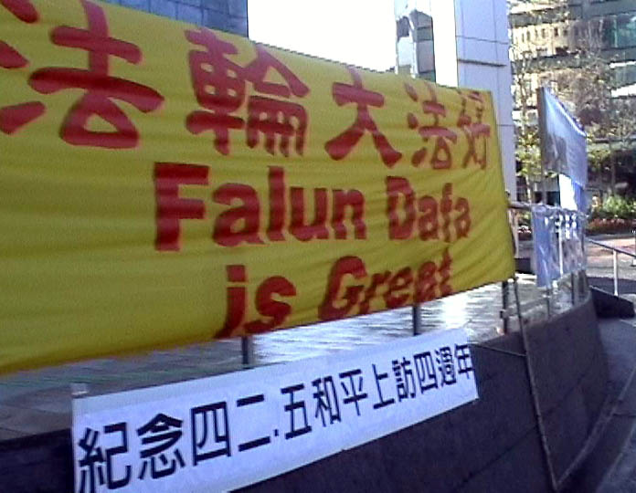(Clearwisdom.net) On April 25, about 40 Oakland practitioners held activities at Aotea Square commemorating the 4th anniversary of the April 25 peaceful appeal. Activities included group practice, showing truth clarifying videos, and collecting signatures.