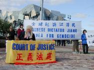 (Clearwisdom.net) On July 19-20, Melbourne Dafa practitioners held a series of activities, such as demonstrating the exercises, distributing Dafa truth-clarifying materials and holding a candlelight vigil to raise people's awareness of the four-year suppression. When the "Court of Justice" set up on Federal Plaza in downtown sentenced Jiang for crimes against humanity and genocide, the audience gave their warm applause.