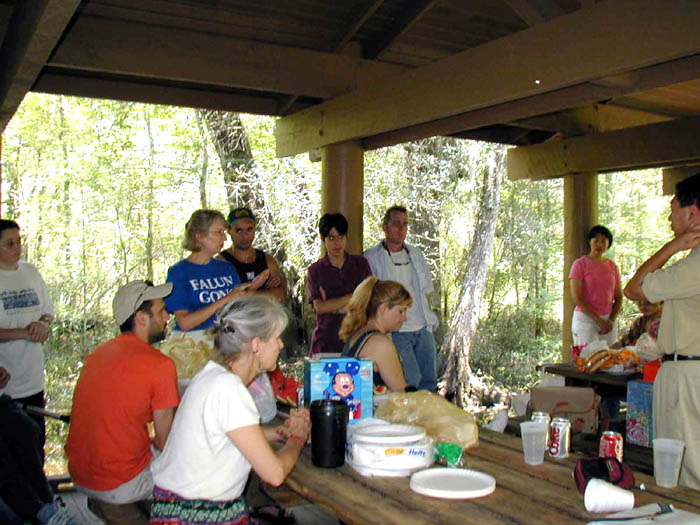 The picnic started at about noon, as more and more people joined in. Practitioners broke into different groups and talked to the guests. Some talked to the people who had practiced with us before to let them know the current situation and to answer questions they may have.
