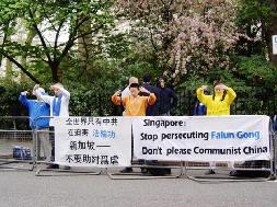 Falun Gong practitioners appeal in front of the Singapore Embassy