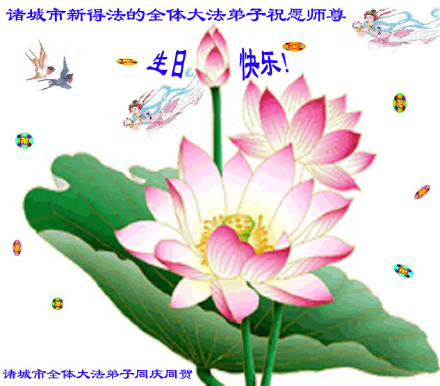 All Falun Dafa Disciples in Surrounding Towns and Villages of Zhucheng, Shandong Province Respectfully Wish Master Happy Birthday!