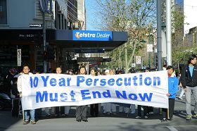 (Clearwisdom.net) Ten years ago on July 20, The Chinese Communist Party (CCP) launched the persecution of Falun Gong. On July 18, 2009, over two hundred Falun Gong practitioners held a rally in Melbourne to call for help from kind and just people to put an end to the persecution.