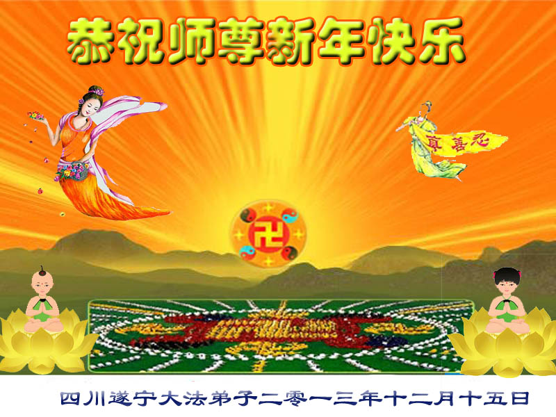 (Minghui.org) With the advent of the New Year, Falun Dafa practitioners around the world traditionally send greetings to the Minghui website. Along with the greetings are scores of homemade greeting cards, poems, and photographs sent to respectfully wish our compassionate and selfless Master Li Hongzhi a Happy New Year. They express gratitude for Master’s compassionate salvation.