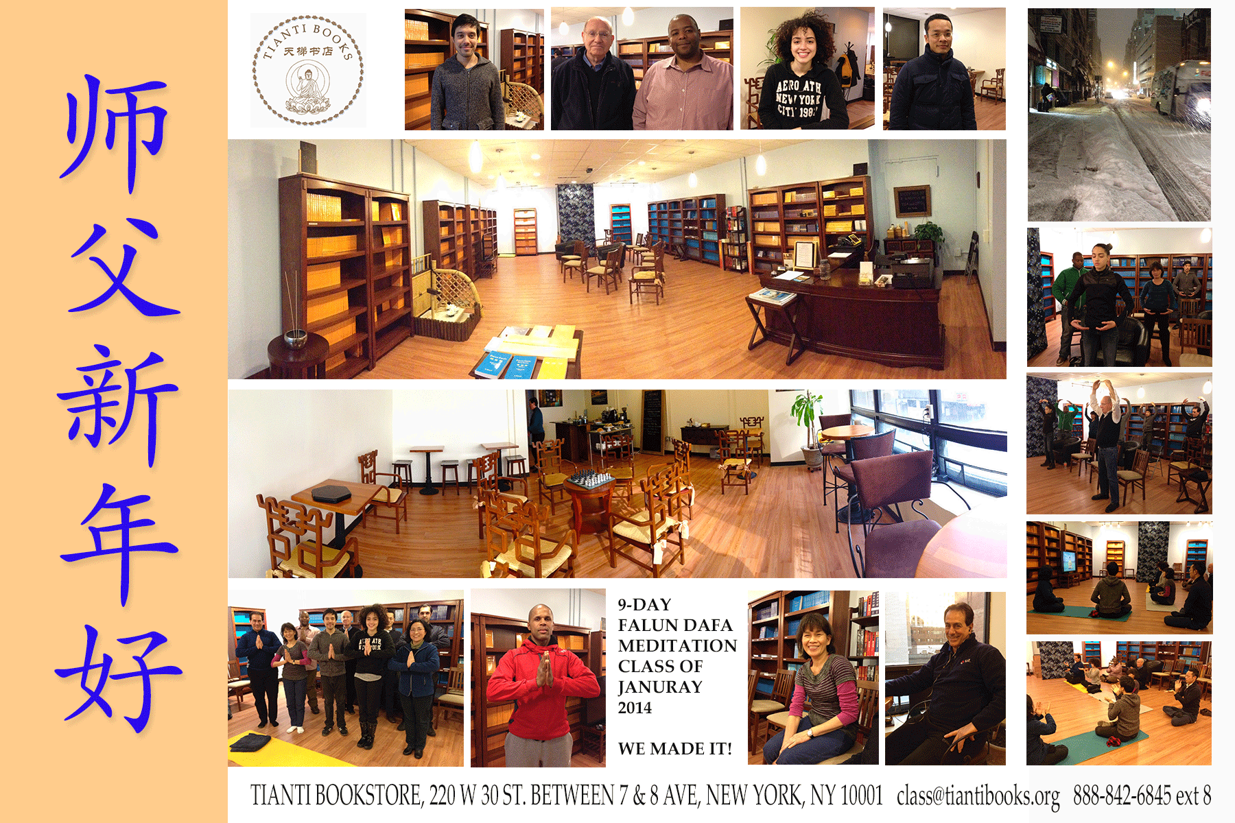 Greetings to Master were also received from all practitioners who attended a nine-day Falun Dafa Meditation Workshop that concluded days ago at Tianti Bookstore, Manhattan.