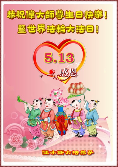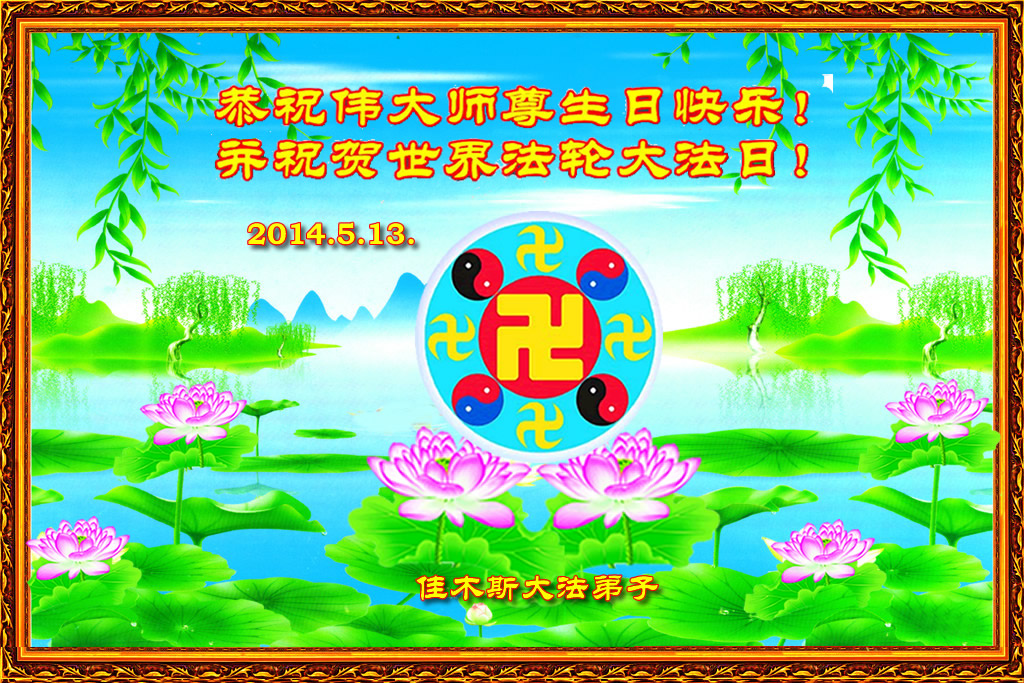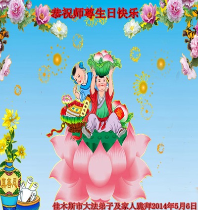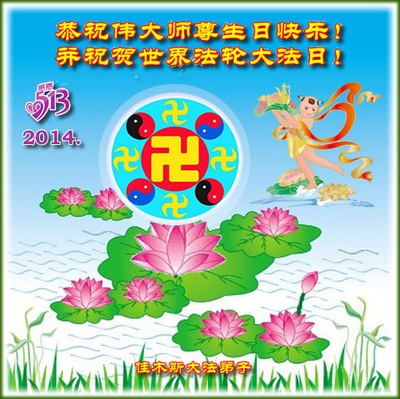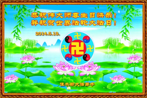 (Minghui.org) Practitioners from Jiamusi City, Heilongjiang Province, China celebrate World Falun Dafa Day and the 22nd anniversary of Falun Dafa's introduction to the public! Respectfully wishing revered Master a Happy Birthday!