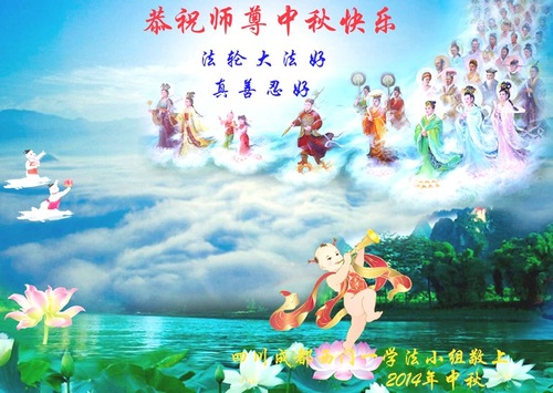 (Minghui.org) For the occasion of the 2014 Mid-Autumn Festival (also known as Moon Festival), Falun Dafa practitioners both inside and outside China have sent greetings to the founder of Falun Dafa, Master Li Hongzhi. Along with the written greetings are scores of homemade greeting cards, poems and photographs expressing gratitude and wishes to Master Li for a Happy Mid-Autumn Festival.