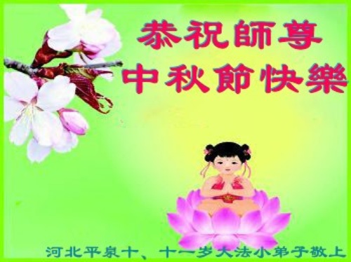 (Minghui.org) Many young Falun Dafa practitioners sent in greetings to wish revered Master a Happy Mid-Autumn Festival.