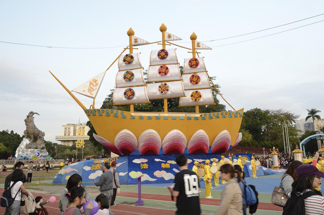 (Minghui.org) The Lantern Festival traditionally falls on the last day of the Chinese New Year celebration. The annual Lantern Show in Taiwan was held in Taichung this year on February 28, 2015. Falun Gong practitioners contributed a six-story tall boat decorated with a variety of lanterns, which drew a lot of attention.