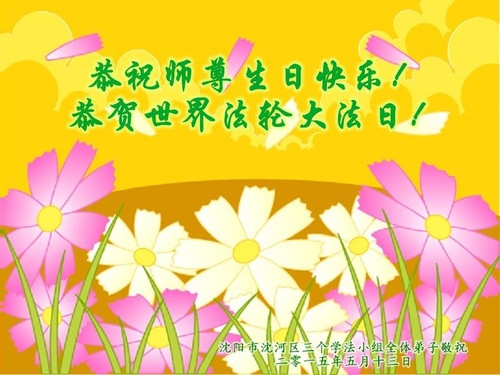 Falun Dafa Practitioners from Shenyang City Celebrate World Falun Dafa Day and Respectfully Wish Master Li Hongzhi a Happy Birthday (23 Greetings)
