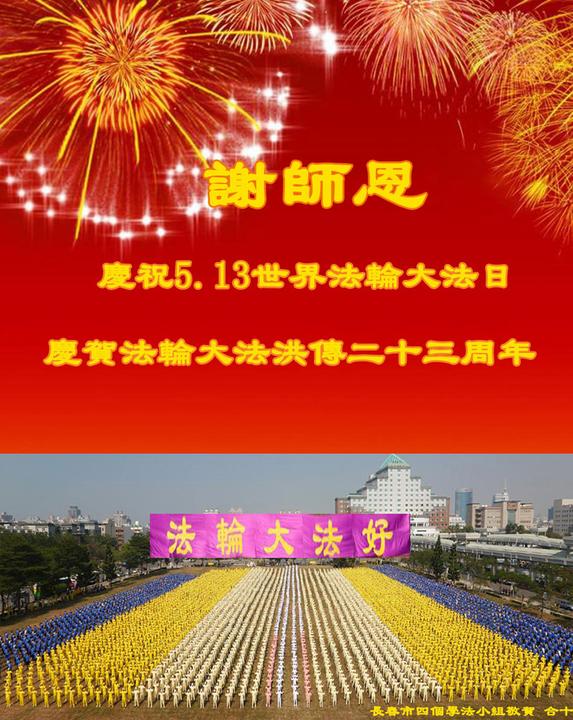 Falun Dafa Practitioners from Changchun City Celebrate World Falun Dafa Day and Respectfully Wish Master Li Hongzhi a Happy Birthday (26 Greetings)