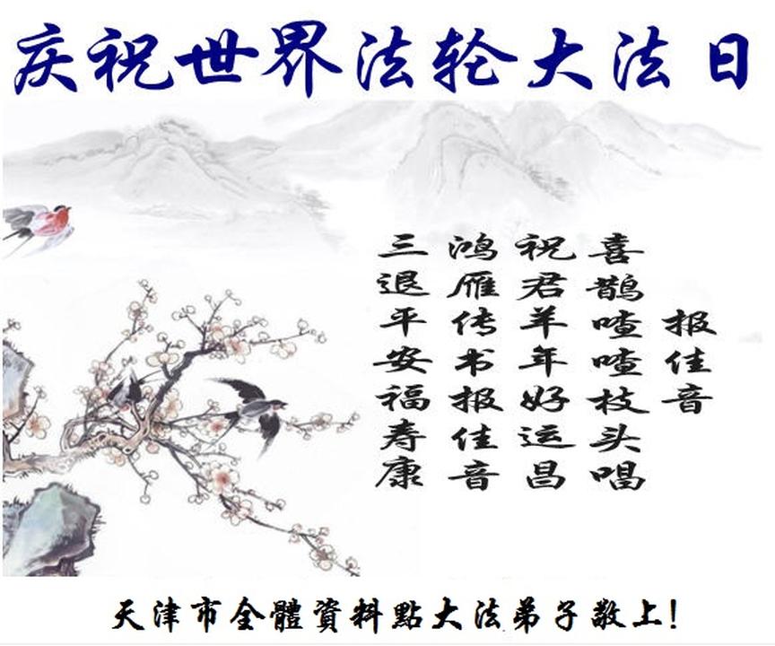 Falun Dafa Practitioners from Tianjin Celebrate World Falun Dafa Day and Respectfully Wish Master Li Hongzhi a Happy Birthday (24 Greetings)