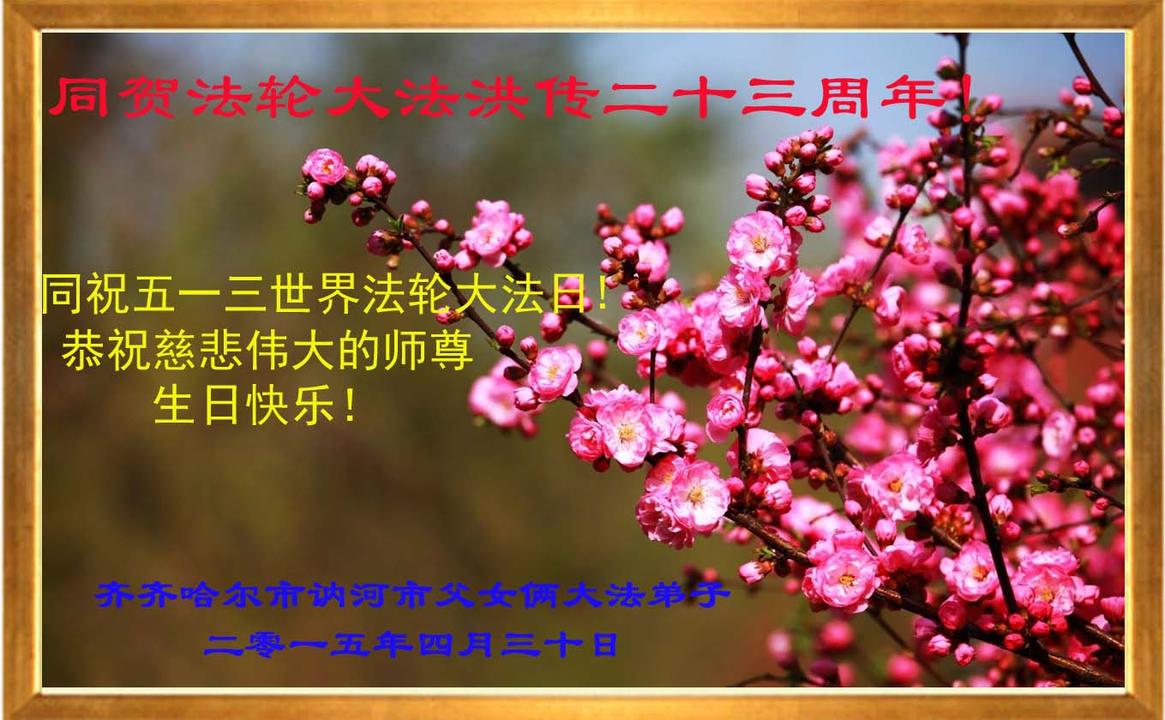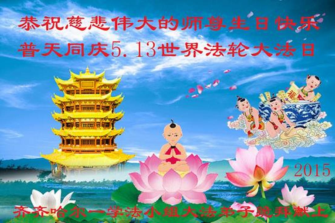 Falun Dafa Practitioners from Qiqihar City Celebrate World Falun Dafa Day and Respectfully Wish Master Li Hongzhi a Happy Birthday (22 Greetings)