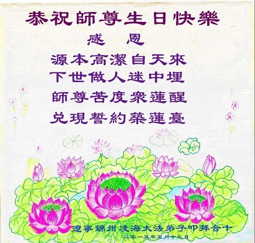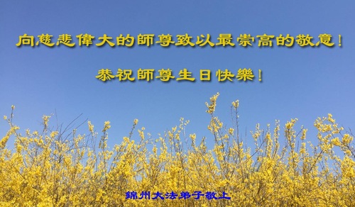 Falun Dafa Practitioners from Jinzhou City Celebrate World Falun Dafa Day and Respectfully Wish Master Li Hongzhi a Happy Birthday (26 Greetings)
