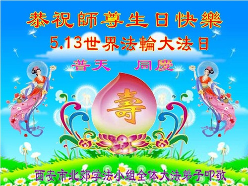 Falun Dafa Practitioners from Xi'an City Celebrate World Falun Dafa Day and Respectfully Wish Master Li Hongzhi a Happy Birthday (26 Greetings)