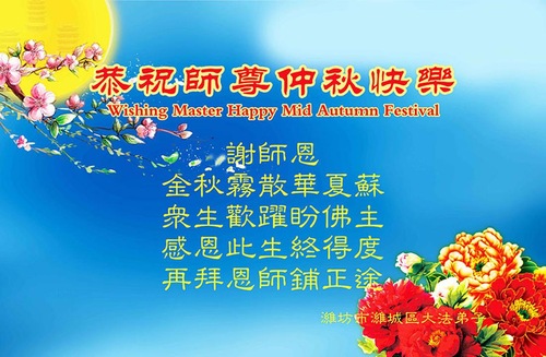 Falun Dafa Practitioners from Weifang City Respectfully Wish Master Li Hongzhi a Happy Mid-Autumn Festival (28 Greetings)