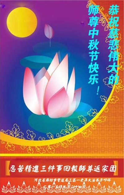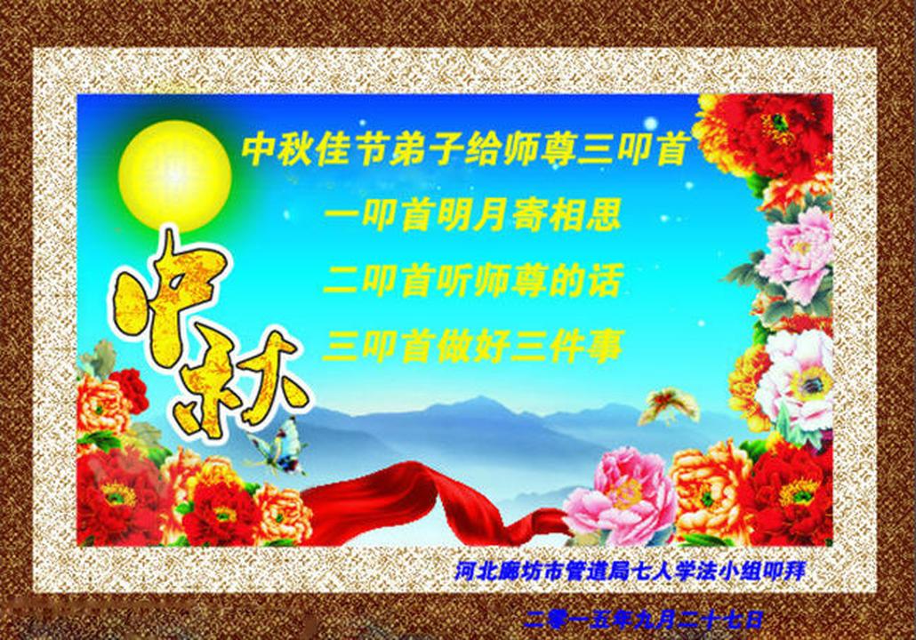 Falun Dafa Practitioners from Langfang City Respectfully Wish Master Li Hongzhi a Happy Mid-Autumn Festival (18 Greetings)