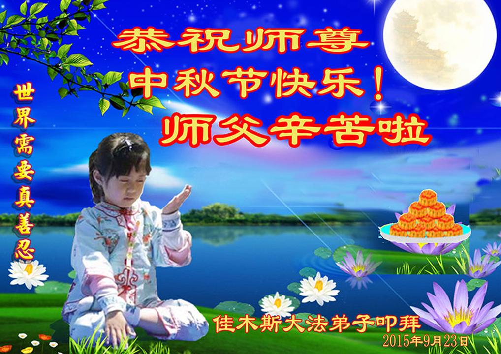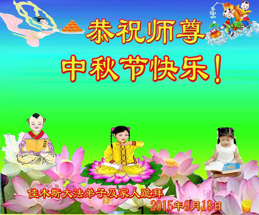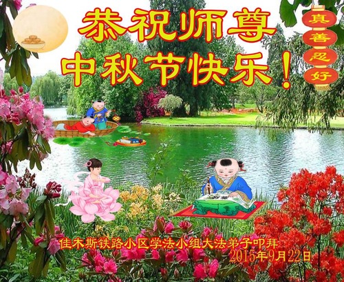 Practitioners from Jiamusi City Wish Revered Master a Happy Mid-Autumn Festival!