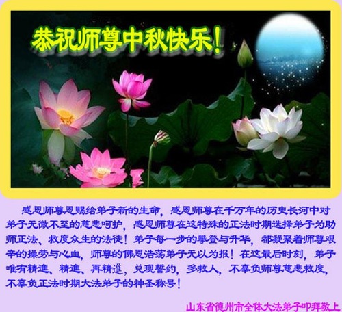 Falun Dafa Practitioners from Dezhou City Respectfully Wish Master Li Hongzhi a Happy Mid-Autumn Festival (30 Greetings)