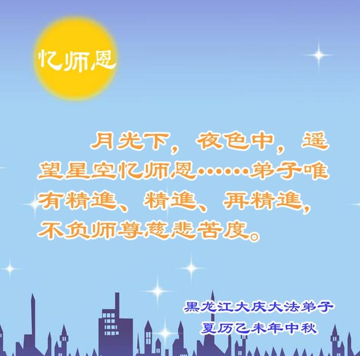 Falun Dafa Practitioners from Daqing City Respectfully Wish Master Li Hongzhi a Happy Mid-Autumn Festival (21 Greetings)