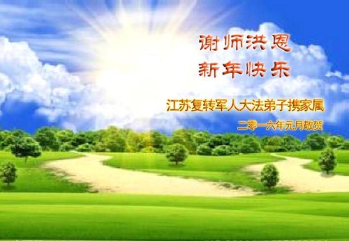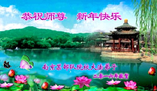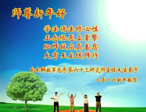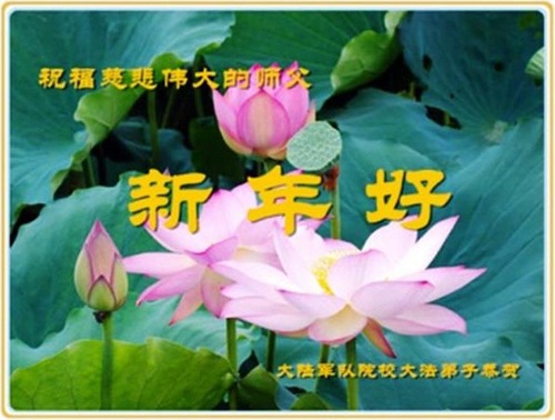 Practitioners from the General Staff Headquarters wrote:“Falun Dafa was introduced and it brings a new world,with many people saved, the society is renewed.Truthfulness-Compassion-Forbearance will be celebrated everywhere,and the compassionate salvation from Master is remembered forever.”Falun Dafa Practitioners from the Military Wish Revered Master a Happy New Year!