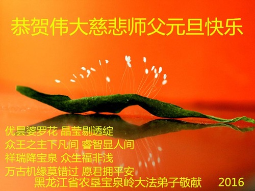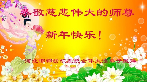 One practitioner from the railroad system in Datong City, Shanxi Province wrote,“As we celebrating the arrival of New Year,we wish Master the best at this special occasion.Although we present our thankfulness with flowers,our true gratitude is beyond description.The only thing we can do is remain diligentand make solid progress at each step of our cultivation.We will assist Master to save more people,and we will fulfill our mission.”