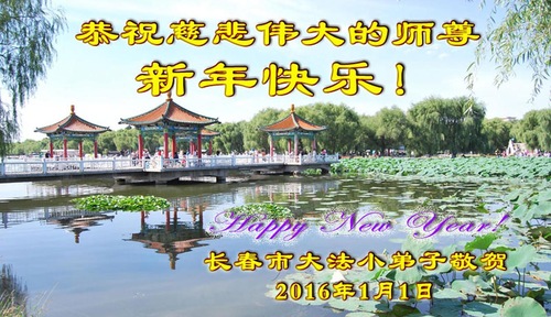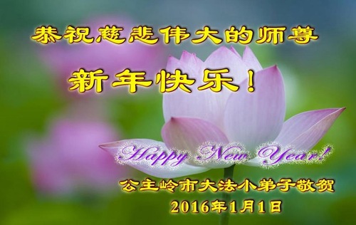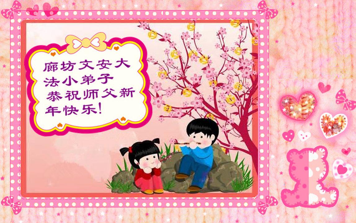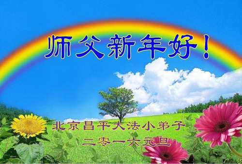 One greeting read, “In this new year, we will put more efforts in studying the Fa; look inwards regardless of right or wrong; save more people and not let Master down. We will be steadfast in doing the three things and let Master be more relieved and less worried. Thank you, Master!”