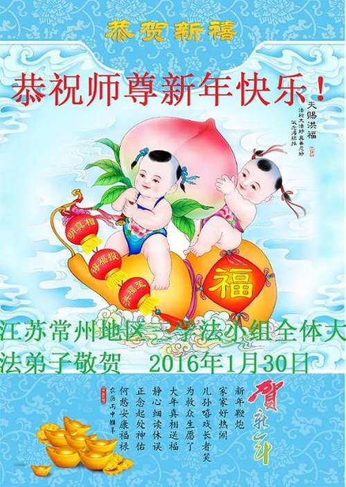 Falun Dafa Practitioners from Jiangsu Province Respectfully Wish Master Li Hongzhi a Happy Chinese New Year (22 Greetings)