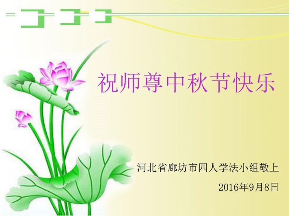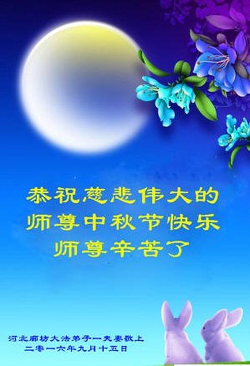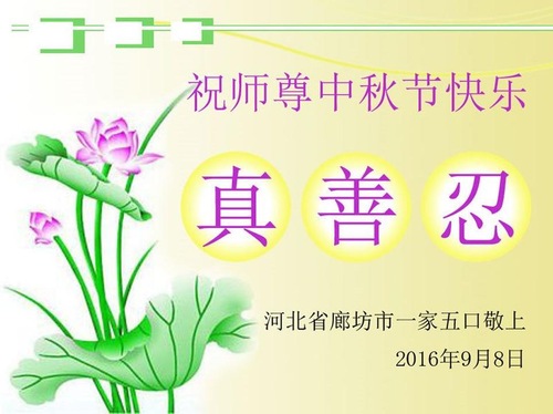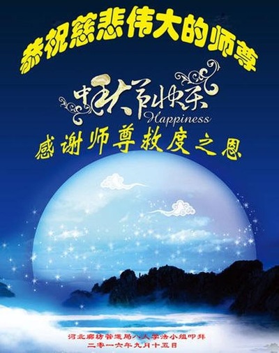 Falun Dafa Practitioners from Langfang City Respectfully Wish Master Li Hongzhi a Happy Mid-Autumn Festival (22 Greetings)