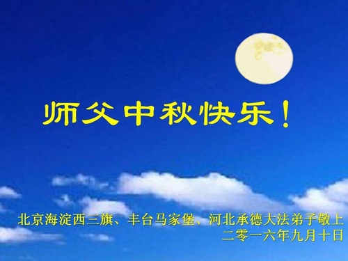 Falun Dafa Practitioners from Beijing Respectfully Wish Master Li Hongzhi a Happy Mid-Autumn Festival (26 Greetings)
