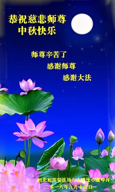 Falun Dafa Practitioners from Langfang City Respectfully Wish Master Li Hongzhi a Happy Mid-Autumn Festival (25 Greetings)