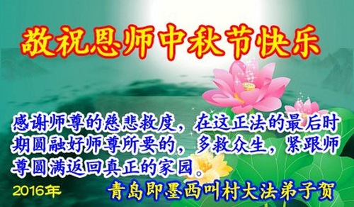 Falun Dafa Practitioners from Qingdao City Respectfully Wish Master Li Hongzhi a Happy Mid-Autumn Festival (27 Greetings)