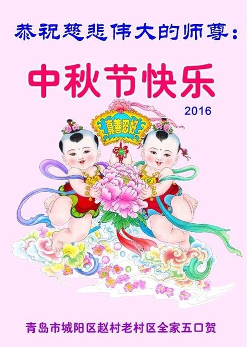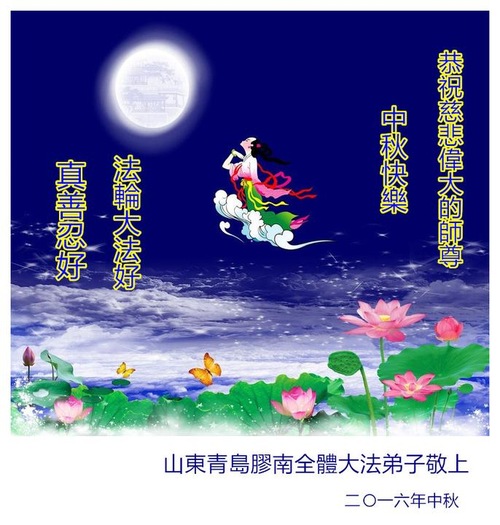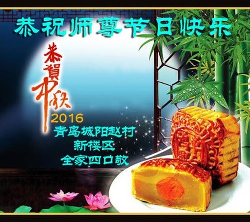 Falun Dafa Practitioners from Qingdao City Respectfully Wish Master Li Hongzhi a Happy Mid-Autumn Festival (23 Greetings)