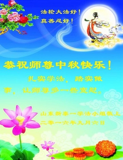 Falun Dafa Practitioners from Shandong Province Respectfully Wish Master Li Hongzhi a Happy Mid-Autumn Festival (25 Greetings)