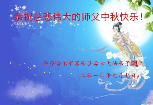 Falun Dafa Practitioners from Qiqihar City Respectfully Wish Master Li Hongzhi a Happy Mid-Autumn Festival (23 Greetings)