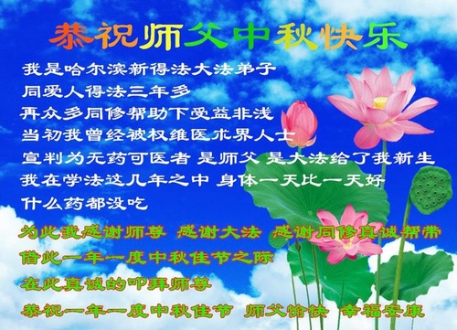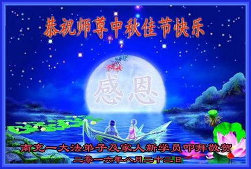 (Minghui.org) On the occasion of the 2016 Mid-Autumn Festival (also known as the Moon Festival), many new Falun Dafa practitioners have sent greetings to the founder of Falun Dafa, Master Li Hongzhi. Along with written greetings are scores of homemade greeting cards, poems and photographs expressing gratitude and best wishes to Master Li for a Happy Mid-Autumn Festival.