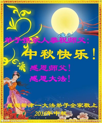 Falun Dafa Practitioners from Chengdu City Respectfully Wish Master Li Hongzhi a Happy Mid-Autumn Festival (25 Greetings)