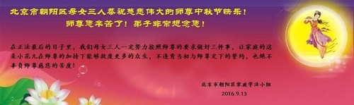 Falun Dafa Practitioners from Beijing Wish Revered Master a Happy Mid-Autumn Festival!