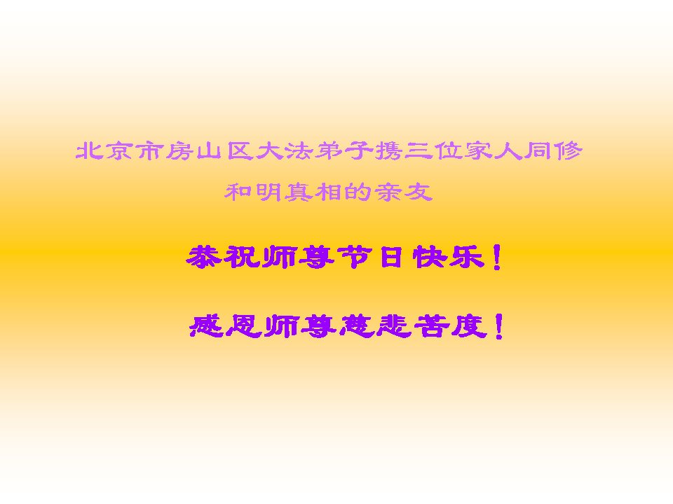 (Minghui.org) In this report, we present a selection of the 28 greetings sent from Falun Dafa practitioners in Beijing, Hebei Province, China: