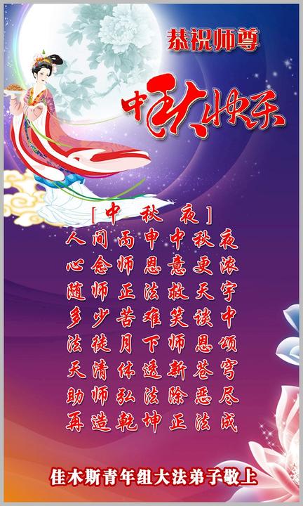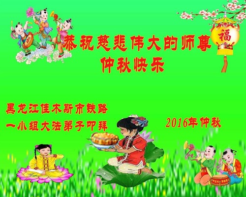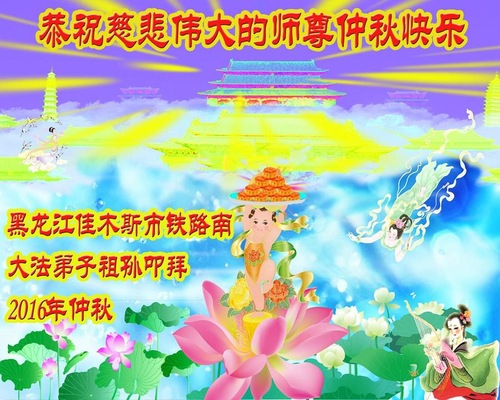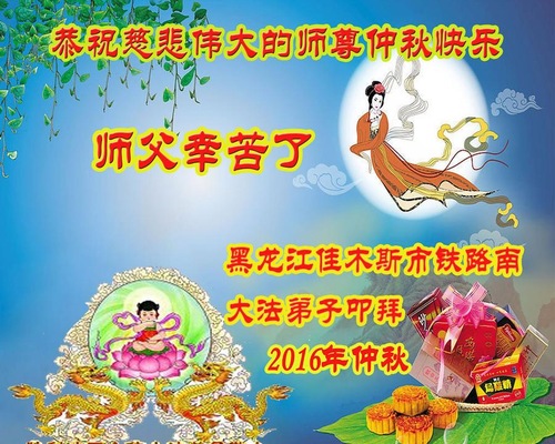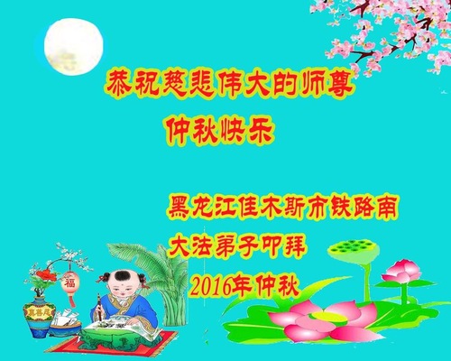 Falun Dafa Practitioners from Jiamusi City Respectfully Wish Master Li Hongzhi a Happy Mid-Autumn Festival (24 Greetings)