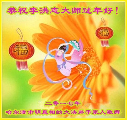 A man from Xianning City in Hubei Province, together with his two families of six people, wish Master Li a happy new year. He wrote, “My name is Yu Minghai. Though I do not practice Falun Dafa, I know that Falun Dafa is good ... Once, my car flipped over on a mountain with six people in it. We were safe and sound, while the car was thoroughly damaged. We thank Master for saving us!”