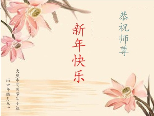 Falun Dafa Practitioners from Daqing City Respectfully Wish Master Li Hongzhi a Happy Chinese New Year (22 Greetings)
