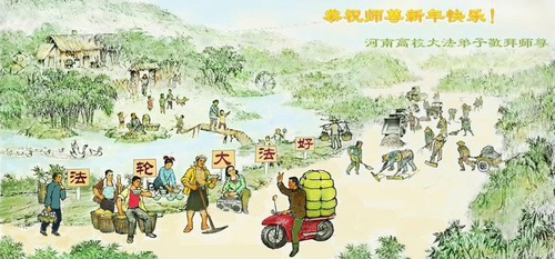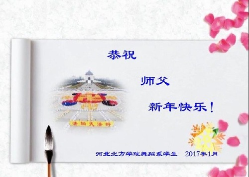 An elementary school student wrote in his greeting message: “Happy new year Master. I often teach my friends at school the exercises and teachings of Falun Dafa. Everyone likes me and I always do well at school. I know these are the benefits of practising Dafa. Thank you Master.”