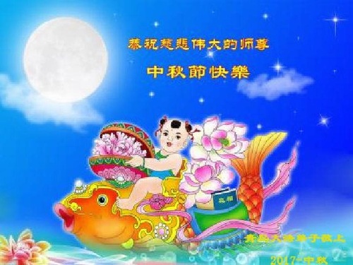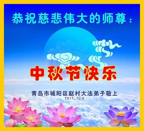 Falun Dafa Practitioners from Qingdao City Respectfully Wish Master Li Hongzhi a Happy Mid-Autumn Festival (23 Greetings)