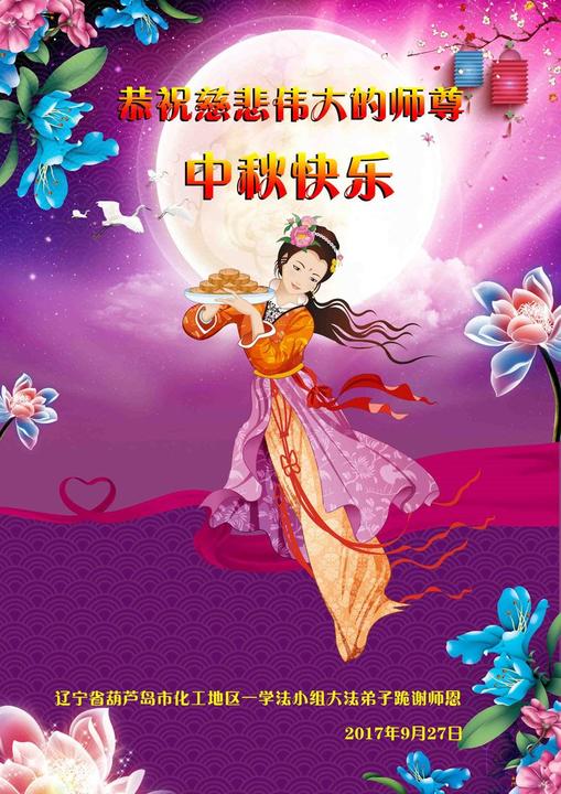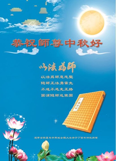 Falun Dafa Practitioners from Huludao City Respectfully Wish Master Li Hongzhi a Happy Mid-Autumn Festival (21 Greetings)