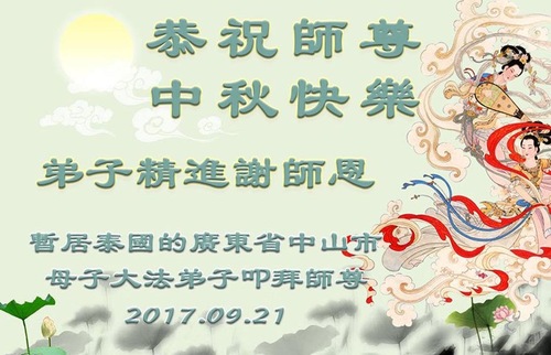 Mother and Son Practitioners from Guangdong Province Who Are Temporarily in Thailand Wish Master a Happy Mid-Autumn Festival!