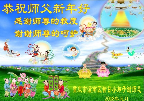 “With these phrases in mind, I was in the top 5 in my class in each exam. When I did not know how to answer a math question during an exam, I read the two phrases in mind, and the answer would appear in my mind. I want to ask my loved ones to remember these wonderful phrases, so that they will be blessed and protected by Master,” he wrote in his greeting.