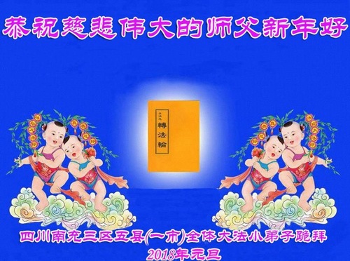 A young practitioner from Xinjin County, Sichuan Province tells Master Li his new year resolution in his greetings, “In the new year, I'll think of others when doing anything and look within when encountering conflicts. I'll listen to what Master teaches and cultivate myself well.”